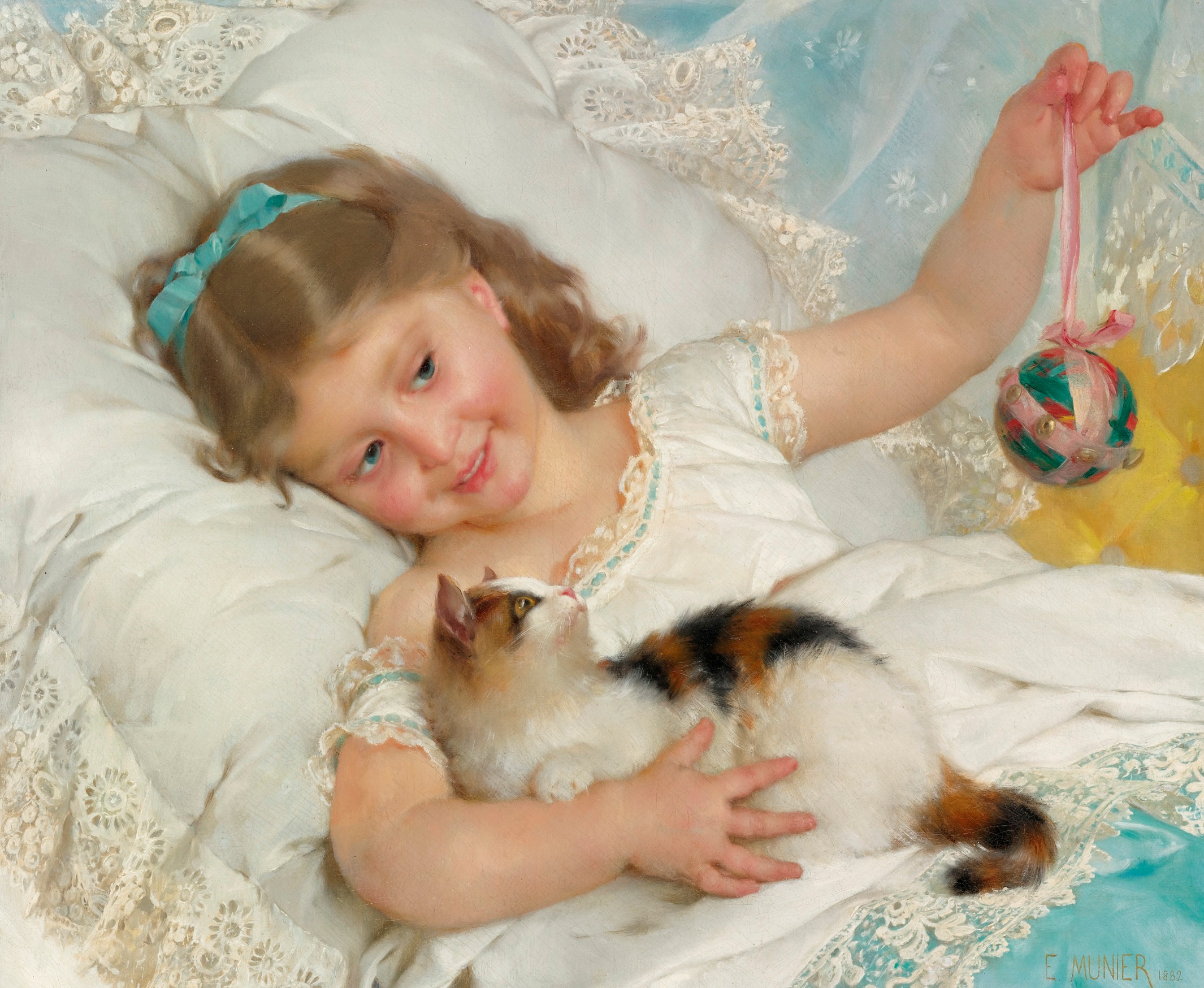 Constatata l’impotenza della scienza, la mamma della bimba decise fare un gesto, non si sa bene se caritatevole, con l’intento strappare un ultimo sorriso alla piccola moribonda, o se in mente avesse un estremo tentativo di cura. Fatto si è che posò nel suo lettuccio, sulla candida copertina imbottita di piume, un micetto, un batuffolo di forse due mesi o tre, che avevano regalato alla bimba come compagno di giochi in occasione del suo compleanno, proprio pochi giorni prima che cadesse ammalata. Il gattino si avvicinò al viso della piccola inferma, spalancò le minuscole fauci e le soffio nelle narici. E il prodigio accadde. La bambina fece un profondo sospiro, aprì gli occhi, sorrise e riprese a respirare a pieni polmoni. Nel giro di ore bimba sfebbrò e in pochissimi giorni si riprese completamente e tornò a giocare con il suo compagno diletto.